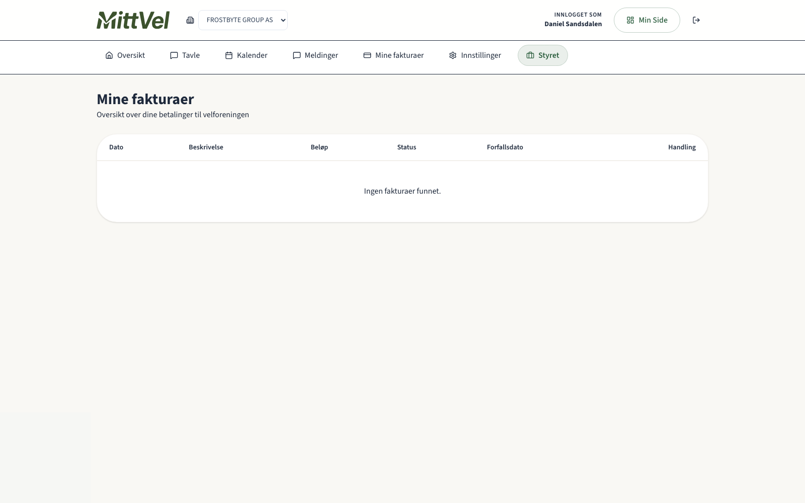 Denne siden er medlemmets oversikt over egne fakturaer og betalinger.